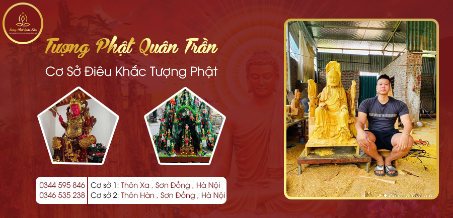 Chúng tôi luôn đặt tiêu chí “chất lượng – tâm thành – bền đẹp theo thời gian” lên hàng đầu: từ việc lựa chọn gỗ tốt, chạm khắc tinh xảo, tới hoàn thiện lớp sơn dát vàng/bạc sang trọng. Hãy để mỗi tượng Phật, mỗi án gian hay mỗi hoành phi – câu đối do Quân Trần chế tác trở thành tâm điểm cho không gian thờ cúng — nơi giữ gìn đạo lý, tâm linh và kết nối cội nguồn.