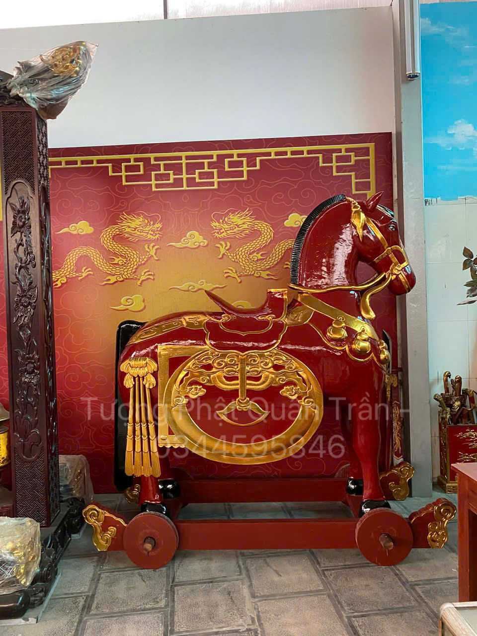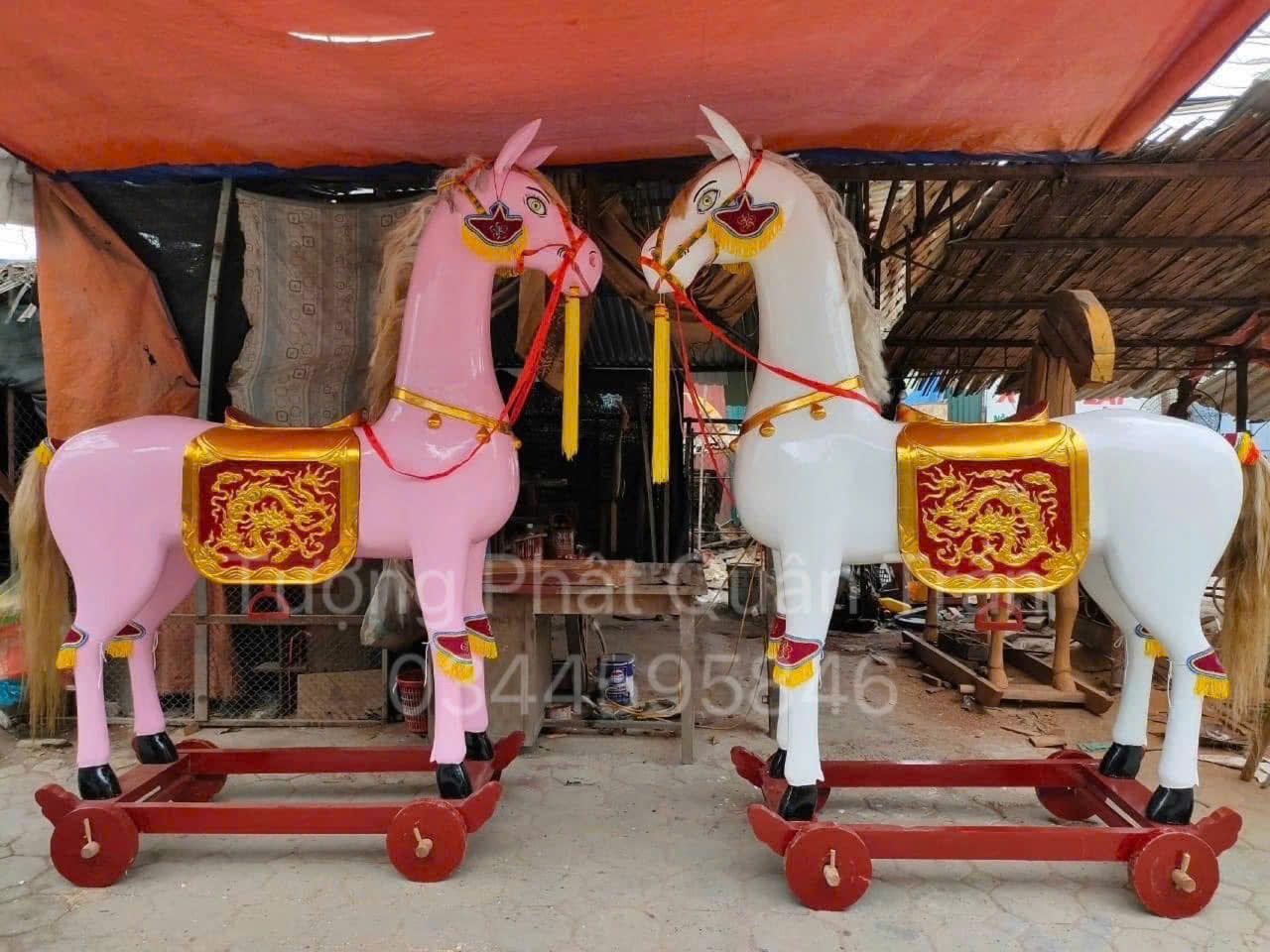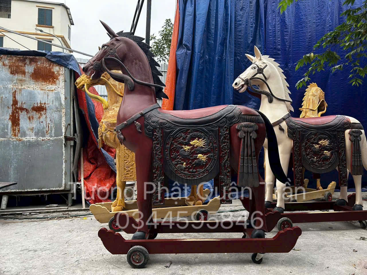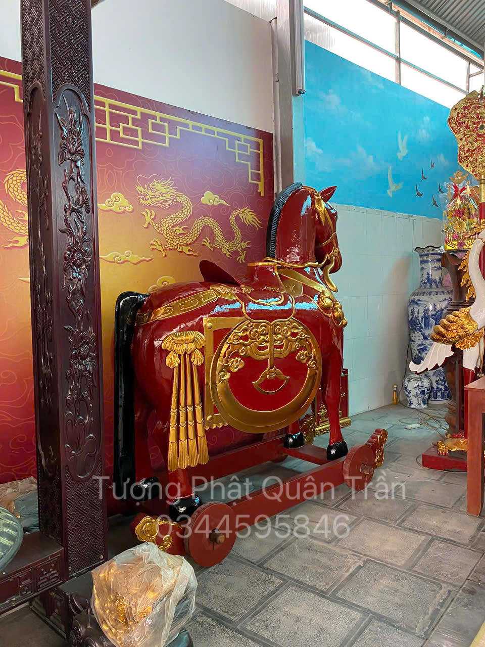 Địa chỉ mua ngựa thờ gỗ mít sơn son thếp vàng uy tín, chất lượng