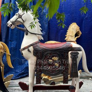 Chạm khắc chi tiết: Tỉ mỉ tạc từng sợi bờm, đuôi và các họa tiết trên yên ngựa.